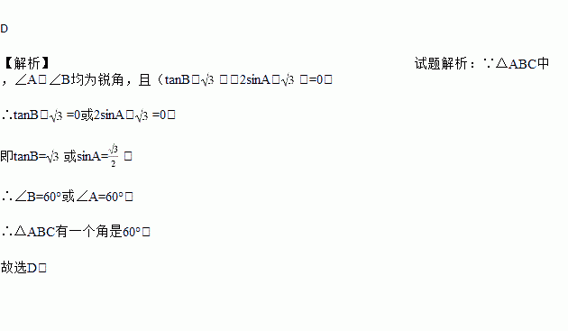 △ABC中,∠A,∠B均为锐角,且(tanB﹣)(2sinA﹣)=0,则△ABC一定是( )