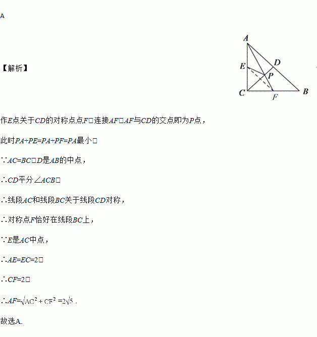 如图,在中,,点、分别是、的中点,在上找一点,使最小,则这个最小值是( ).