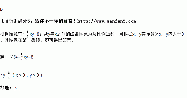 三角形的面积为,这时底边上的高与底边之间的函数关系式用图象来表示是( )