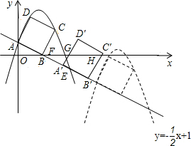 分别交y轴、x轴于A,B两点,以线段AB为边向上作正方形ABCD过点A,D,C的抛物线y=ax2+bx+1与直线的另一交点为点E