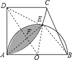 16.分析 证得△DAO≌△DEO,得到∠ADO=∠EDO,∠DAO=∠DEO=90°,于是求得AD=$\sqrt{3}$,∠ADO=∠EDO=30°,∠AOD=∠EOD=60°,∠ADE=60°,得到∠AOE=120°,由DA=DE,OA=OE,得到AE⊥DO,∠FAO=30°,OF=$\frac{1}{2}$OA=$\frac{1}{2}$,AE=$\sqrt{3}$,由于阴影部分的面积=(S扇形DAE-S△DAE)+(S扇形OAE-S△OAE),把数值代入即可.