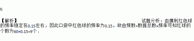 在一个不透明的布袋中装有红色、白色玻璃球共40个,除颜色外其他完全相同,小明通过多次摸球试验后发现,其中摸到红色球的频率稳定在0.15左右,则口袋中红色球可能有__________个.