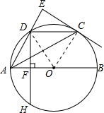 (2)四边形AOCD为菱形.由(1)得$\widehat{AD}$=$\widehat{CB}$,则∠DCA=∠CAB可证明四边形AOCD是平行四边形,再由OA=OC,即可证明平行四边形AOCD是菱形(一组邻边相等的平行四边形是菱形);