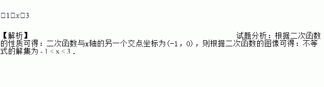 如图,是二次函数y=ax2+bx+c图象的一部分,其对称轴为直线x=1,若其与x轴一交点为A(3,0),则由图象可知,不等式ax2+bx+c<0的解集是_____.