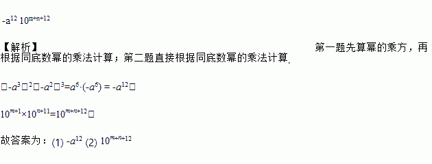 (-a3)2(-a2)3= ________,10m+1×10n+11=________ .