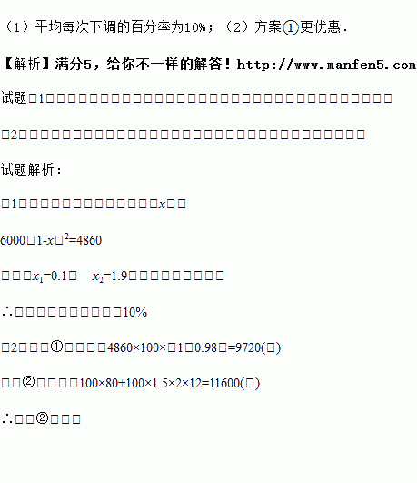 广安市某楼盘准备以每平方米6000元的均价对外销售,由于国务院有关房地产的新政策出台后,购房者持币观望,房地产开发商为了加快资金周转,对价格经过两次下调后,决定以每平方米4860元的均价开盘销售.