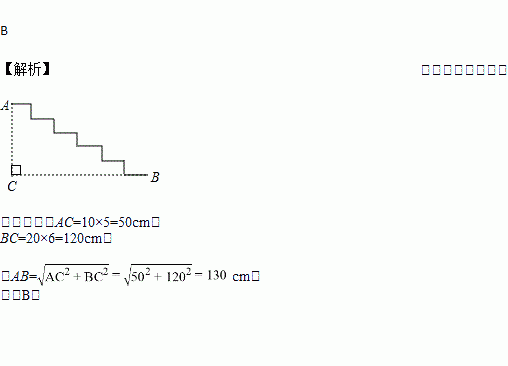 如图,是台阶的示意图.已知每个台阶的宽度都是20cm,每个台阶的高度都是10cm,连接AB,则AB等于( )