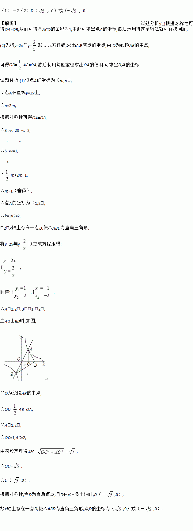 (2)x轴上是否存在一点D,使ΔABD是以AB为斜边的直角三角形?若存在,求出点D的坐标,若不存在,说明理由。