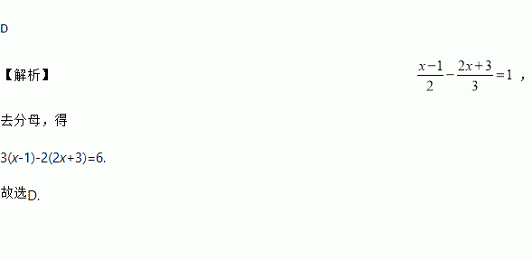 C. 3(x-1)-2(2+3x)=6 D. 3(x-1)-2(2x+3)=6