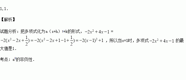 多项式的最大值是 ,此时x= .