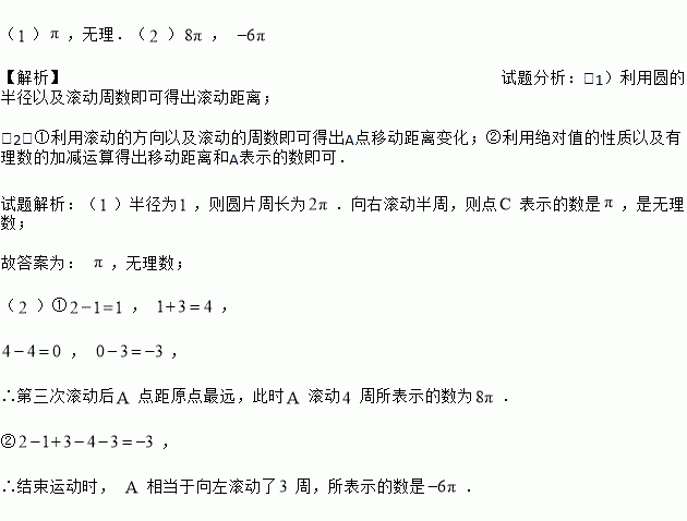 )圆片在数轴上向右滚动的周数记为正数,圆片在数轴上向左滚动的周数记为负数,依次运动情况记录如下:
