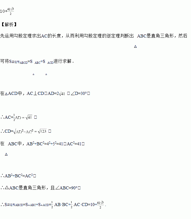 如图,在四边形ABCD中,AC⊥CD,若AB=4,BC=5,AD=2,∠D=30°,求四边形ABCD的面积.