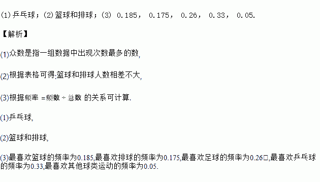 (3)八年级学生最喜欢的各类球类活动的频率各是多少?