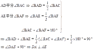 如图,△ABC中,AB = AC,AD、AE分别是∠BAC和∠BAC外角的平分线,