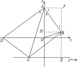 (2)解:过点B作直线BE⊥直线y=-m于E,作AF⊥BE于F,如图,∵∠1+∠2=90°,∠1+∠3=90°,