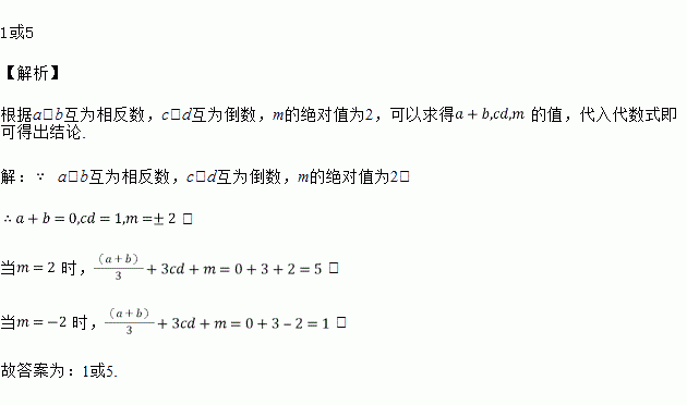 若a、b互为相反数,c、d互为倒数,m的绝对值为2,则: +3cd+m的值为_____.