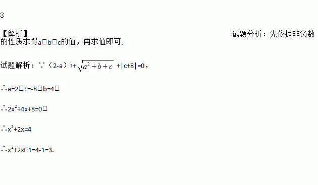设a,b,c都是实数,且满足(2﹣a)2++|c+8|=0,ax2+bx+c=0,求x2+2x﹣1的值.