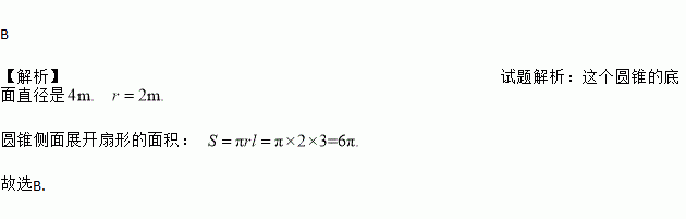 粮仓的顶部是圆锥形,这个圆锥的底面直径是4 m,母线长为3 m,为防雨需在粮仓的顶部铺上油毡,那么这块油毡的面积至少为( )