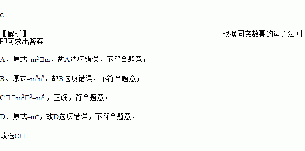 A. m2﹣m=m B. (mn)3=mn3 C. (m2)3=m6 D. m6÷m2=m3