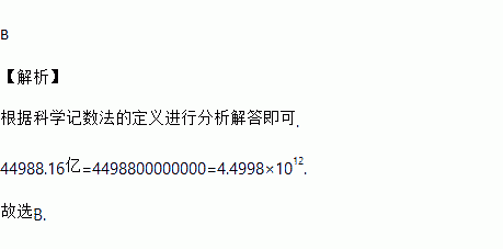 2017年河南省经济保持总体平稳,稳中向好发展态势,生产总值达到44988.16亿元,用科学记数法表示数据44988.16亿为( )