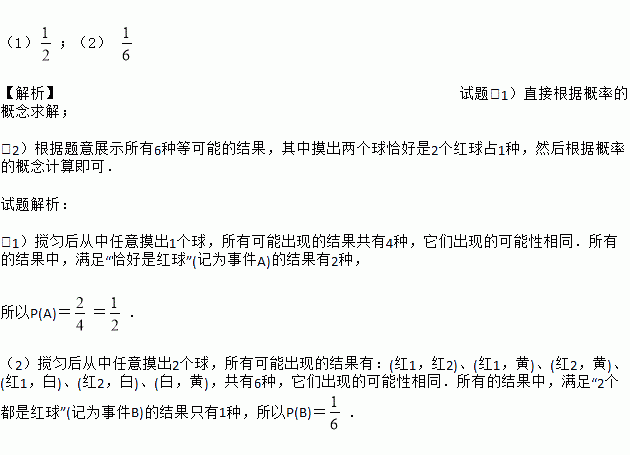 (1)搅匀后从中任意摸出1个球,恰好是红球;