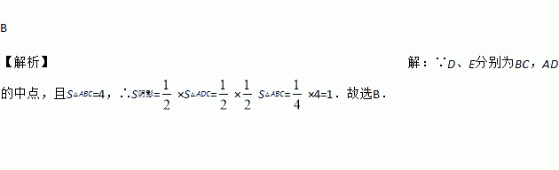 如图,在△ABC中,D,E分别为BC,AD的中点,且S△ABC=4,则S阴影为( )