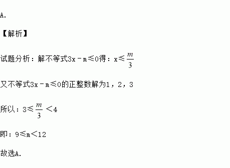 如果不等式3x﹣m≤0的正整数解为1,2,3,则m的取值范围是( )