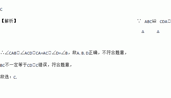 如图,△ABC≌△CDA,且AD=CB,下列结论错误的是( )
