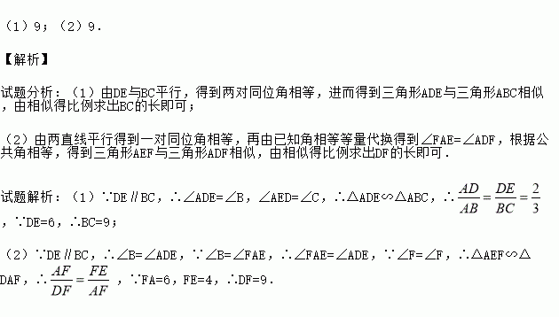 (2)如果∠FAE=∠B,FA=6,FE=4,求DF的长.