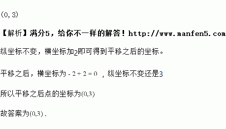 点(-2,3)向右平移2个单位后的坐标为__________.