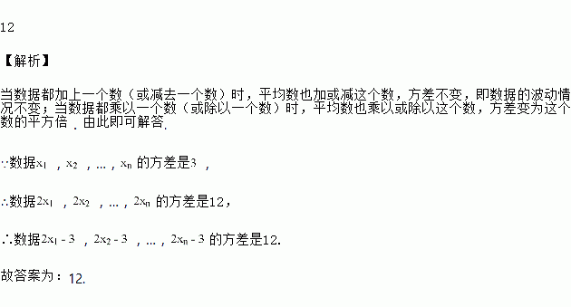已知一组数据,,…,的方差是,则数据,,…,的方差是________.