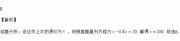 B 【解析】 试题分析:设这件上衣的原价为,则根据题意列方程为解得故选B.