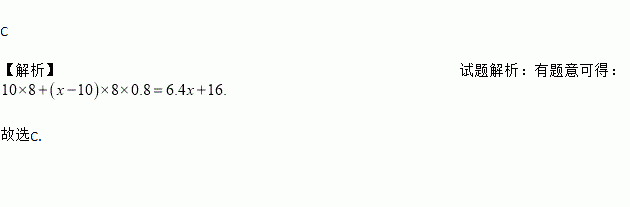 A. 6.4x元 B. (6.4x+80)元 C. (6.4x+16)元 D. (144-6.4x)元