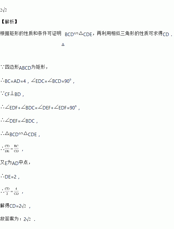 如图,矩形中,于,点恰好是的中点,,则的长为________.