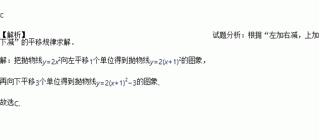 将抛物线向左平移1个单位,再向下平移3个单位,得到的抛物线是( )