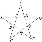 分析:作辅助线连接JB,BD,DF,FH,HJ,五边形JBDFH为正五边形,所以每个内角为108°,再利用三角形外角性质和等腰三角形性质求解即可.
