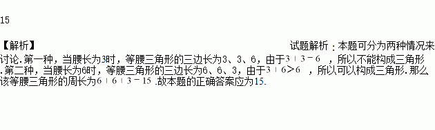 已知一个等腰三角形的两边长分别为3和6,则该等腰三角形的周长是____.
