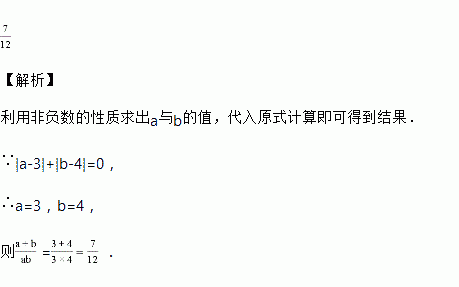 已知|a﹣3|+|b﹣4|=0,求的值.
