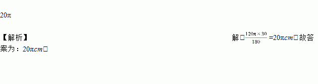如图,当半径为30cm的转动轮转过120?角时,传送带上的物体A平移的距离为______cm 。