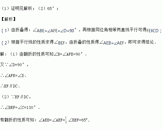 (2)如果∠C=130°,求∠AEB的度数.