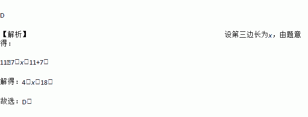 已知三角形两边长分别为7、11,那么第三边的长可以是( )