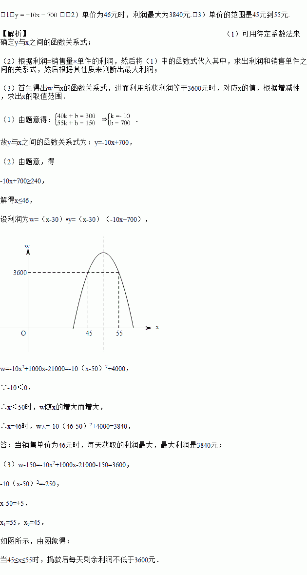£¨3£©¸ÃÍøµêµêÖ÷ÈÈÐĹ«ÒæÊÂÒµ£¬¾ö¶¨´ÓÿÌìµÄÏúÊÛÀûÈóÖоè³ö150Ôª¸øÏ£Íû¹¤³Ì£¬ÎªÁ˱£Ö¤¾è¿îºóÿÌìÊ£ÓàÀûÈó²»µÍÓÚ3600Ôª£¬ÊÔÈ·¶¨¸ÃÆáÆ÷±ÊͲÏúÊÛµ¥¼ÛµÄ·¶Î§.