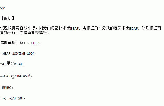如图,EF∥BC,AC平分∠BAF,∠B=80°.求∠C的度数.