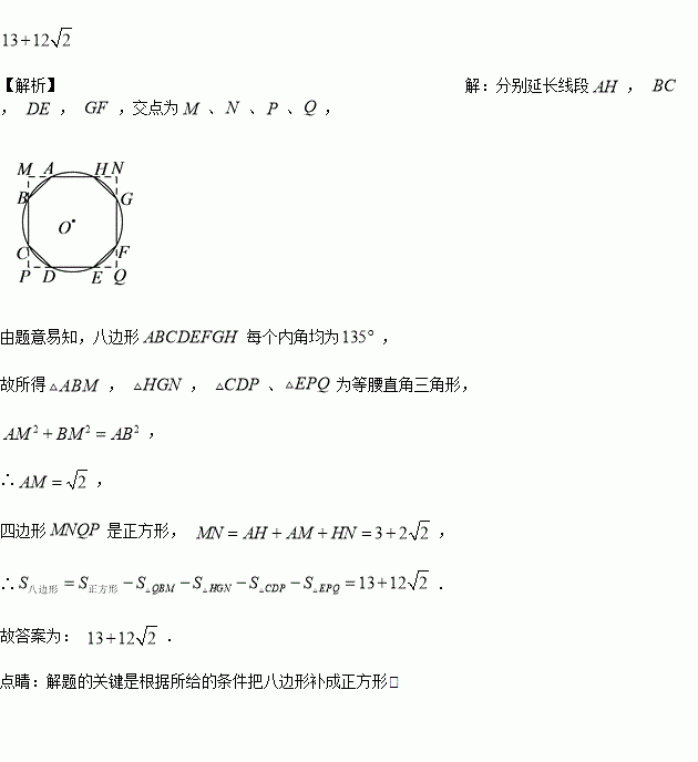 如图,八边形是⊙的内接八边形, , ,这个八边形的面积是__________.