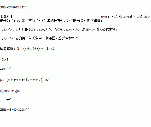 (3)如果x=40,y=10,求整个长方形运动场的周长.