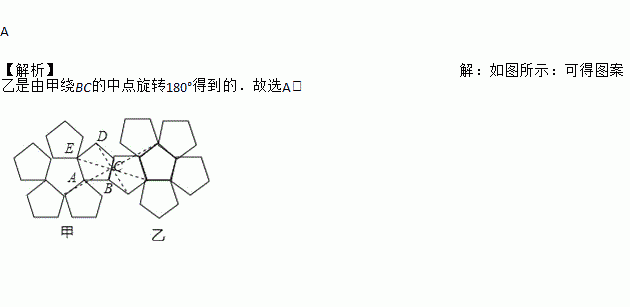 A. 图案乙是由甲绕BC的中点旋转180°得到的