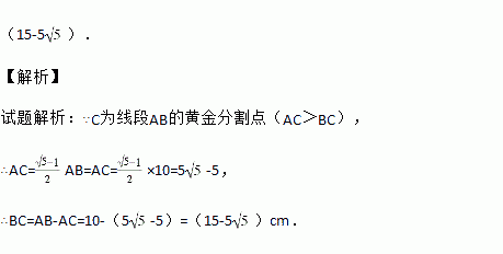 已知线段AB=10cm,C为线段AB的黄金分割点(AC>BC),则BC=_____.