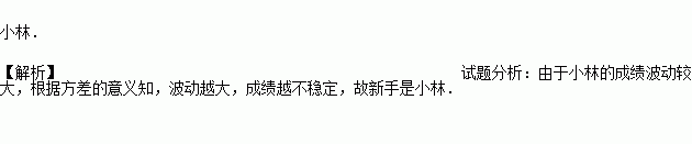 有两名学员小林和小明练习射击,第一轮10枪打完后两人打靶的环数如图所示,通常新手的成绩不太稳定,那么根据图中的信息,估计小林和小明两人中新手是________。