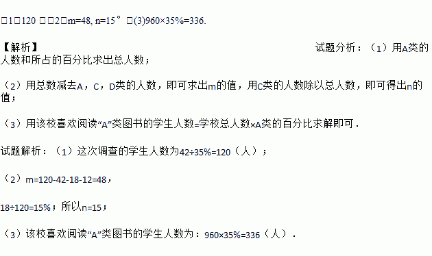 (3)已知该校共有960名学生,请估计该校喜欢阅读“A”类图书的学生约有多少人?