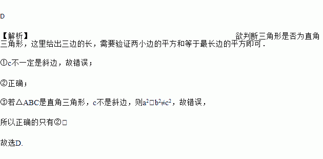 ②△ABC中,如果a2-b2=c2,那么△ABC是直角三角形